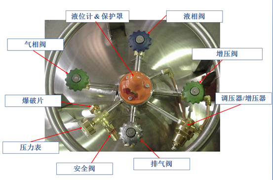 然后加入液氮后測重,一立升液氮重為0.8公斤加上空罐的重量得出滿罐時的重量,減去使用過后現(xiàn)有秤重,就是應(yīng)補(bǔ)充的的容量??梢杂脤S玫囊何怀邷y液位,另一種簡便的方法是找一根干凈的木棒插入液氮內(nèi)數(shù)秒鐘,將木棒迅速取出暴露在空氣中,插入液氮的部份因溫度低而結(jié)成白霜,很易容檢測罐內(nèi)液氮的存量。